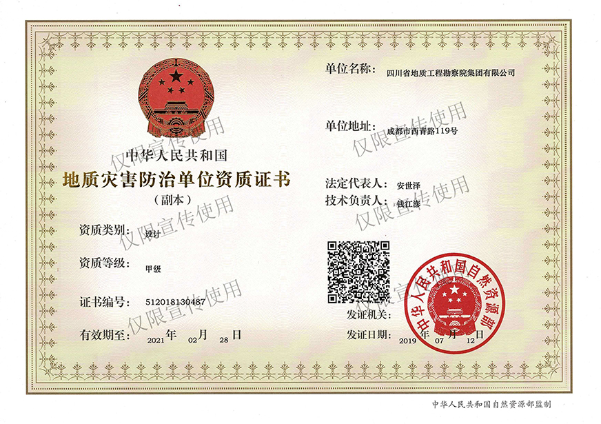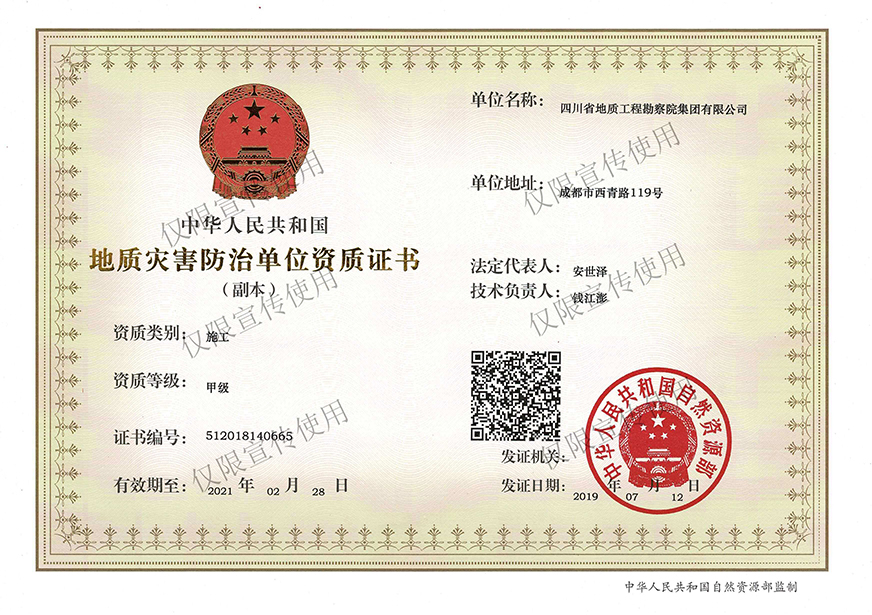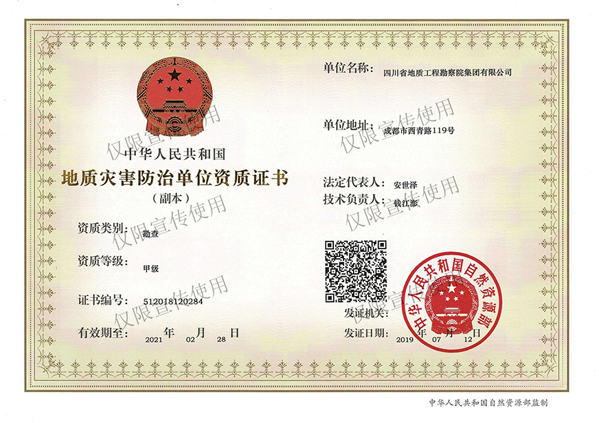 川勘集團視保民平安為己任,以防災治災為使命,依靠數十年技術磨礪與積淀、數百名優秀專業骨干拼搏與奉獻,足跡踏遍三分之二的國土,在西南、西北地區尤其是四川省的地質災害防治工作中為國家及各行業建設做出了重大貢獻。無論是“5·12”特大地震、“4·20”強烈地震的震后應急排查,還是“丹巴縣城保衛戰”——丹巴建設街后山滑坡應急搶險工程、“新時期萬源保衛戰”——萬源向前廣場后山斜坡變形應急搶險工程、“北川地震遺址守護戰”——北川魏家溝泥石流治理工程;無論是創造世界奇跡——綿竹文家溝泥石流應急治理工程,還是打造環境和諧樣板——寶興冷木溝泥石流治理工程、守護童話世界——九寨溝景區地質災害監測預警工程、建設城市森林公園——成都高新東區雷打石滑坡治理工程、補妝閬苑仙葩——閬中“風水古城”南津關景區危巖治理工程都彰顯了川勘人不斷地努力和不懈地追求!