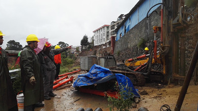 10月9日,施工組冒雨開孔施工,截止晚上7點(diǎn),完成3根鋼管樁的成孔工作。我院迅速的救災(zāi)反應(yīng)、高度的社會(huì)責(zé)任感、精干的搶險(xiǎn)隊(duì)伍和過硬的施工組織能力深受木里縣委縣政府領(lǐng)導(dǎo)和社會(huì)各界好評(píng)。并于10月10日專門邀請甘孜州日報(bào)對施工現(xiàn)場進(jìn)行采訪報(bào)道,截止目前專題報(bào)道尚在編制中。堅(jiān)信在省廳、州委、縣委縣政府以及縣國土局的指揮和支持下,通過我院精心組織,精心施工,定能高效優(yōu)質(zhì)的完成畜牧局東側(cè)滑坡的應(yīng)急搶險(xiǎn)工程,確保木里縣城居民生命安全,還木里一個(gè)安全舒適的居住環(huán)境。(巖土工程公司 張繼)