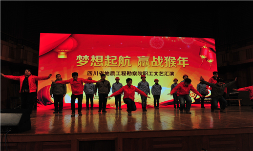 此次文藝匯演16個節目緊緊圍繞抒發地勘情懷、弘揚地勘精神、傳播地勘文化的主題展開,大合唱、獨唱、小品、舞臺劇、舞蹈、武術等節目形式豐富多彩,個個節目都是精品?!端L流、文永攜》、《深山營救》展現了在“5.12”汶川特大地震、蘆山“4.20”強烈地震后該院職工奮戰在抗震救災一線勇挑重擔、甘于奉獻的精神;《使命夢想我和你》、《地質隊員相親記》、《相親相愛》、《勘探隊員之歌》展現了地勘院人熱愛地質事業,獻身地質事業的情懷;《荒野趣事》、《背起行囊》等節目原型都來源于工作場景,有很強的感染力;《追尋》、《不再猶豫》、《我的少女時代》等節目展示了我院年輕人蓬勃向上的朝氣。全場觀眾在兩個半小時的節目盛宴中,應接不暇,笑聲不斷,喝彩聲此起彼伏,掌聲經久不息。